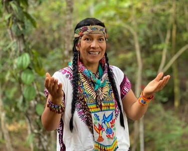 Mamita Beronica is an Indigenous healer from the Kamëntsá community of Sibundoy, Putumayo, born into a lineage of Yagé Medicine. Guided from childhood by her father, Taita Pedro Juagibioy, and connected to the medicine since before her birth through her mother, (a traditional partera and curandera), she carries deep ancestral roots.